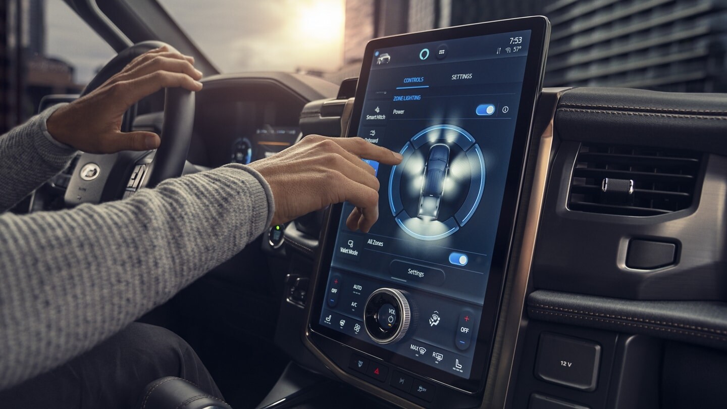 Want to keep working or playing into the night? Zone Lighting illuminates 360 degrees around your truck. Choose them all or select a few. Use the integrated touchscreen or FordPass® App to control each zone remotely.