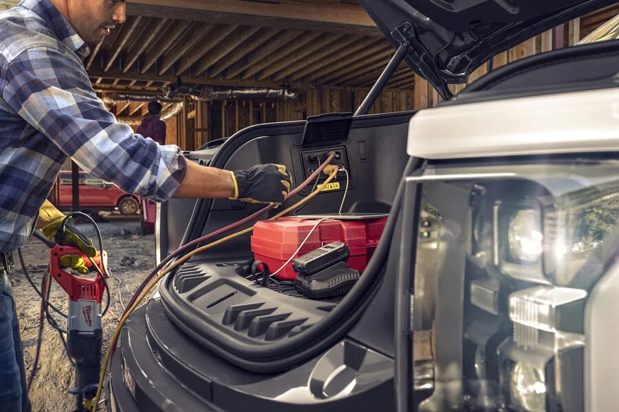 Be the talk of the tailgate. Pack along some conveniences camping. Plug-in a few power tools. With this much power your F-150® Lightning™ is up to the task.