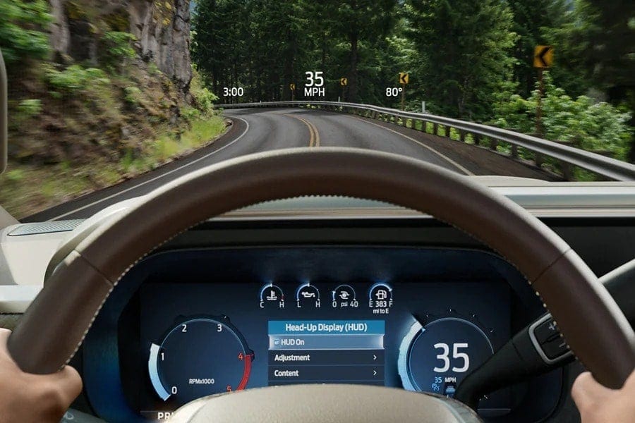 A configurable digital instrument cluster delivers vital data where you need it. A new available Head-Up Display (HUD) helps you keep your eyes fixed firmly ahead. It projects real-time information directly on your windshield. *