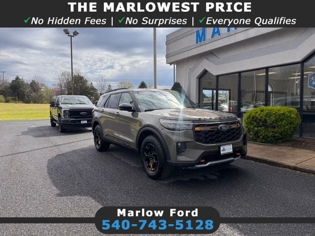 4WD, 3rd Row PowerFold Seats, Ambient Lighting, Equipment Group 800A Standard Package, Ford Connectivity Package (one-Time Purchase - 7 Years), Heated/Ventilated Miko Suede Captain's Chairs, Memory Driver's Seat, Multicontour Seats with Front Active Motion, Navigation System, Panoramic Fixed Glass Roof with Power Shade, Power-Folding with Autofold Side Mirrors, Radio: B&O Sound System by Bang & Olufsen, Radio: B&O Sound System by Bang and Olufsen, Rain-Sensing Wipers (front Only), Tremor Ultimate Package, Wheels: 18" High Gloss Black-Painted Aluminum. Price includes the following incentives, not all customers may qualify. *Price does not include applicable tax, title, license, and processing fee of $589.00$3500 - Retail Customer Cash. Exp. 04/30/2026 2026 Ford Explorer — Marlow Ford in Luray Discover what a modern family SUV should deliver with the 2026 Ford Explorer at Marlow Ford in Luray. This Explorer brings real capability to everyday driving with confident power, available four-wheel drive, strong towing potential, and the kind of tech families rely on—like advanced driver-assist features and a spacious, flexible interior. If you’re comparing new SUVs in Front Royal, looking for Ford performance near Harrisonburg, or searching for a reliable 3-row option around Woodstock, the Explorer offers a proven balance of strength, comfort, and practicality. Shoppers choose Marlow Ford because we keep the process straightforward and personal. Our team helps you narrow down trims, compare features, and understand what truly matters for your daily driving. It’s an approach built on long-term relationships—whether you browse online first, want to value your trade, or prefer to stop in and walk the lot. You’ll always get clear information, direct answers, and a team focused on doing right by you. If the Explorer fits your needs, take the next step today. Visit us at 1021 US-211 West, Luray, or call 540-743-5128 to set up a test drive. You can also check our Explorer inventory online anytime and see current offers with upfront pricing. Building Long-Term Relationships By Exceeding Expectations.