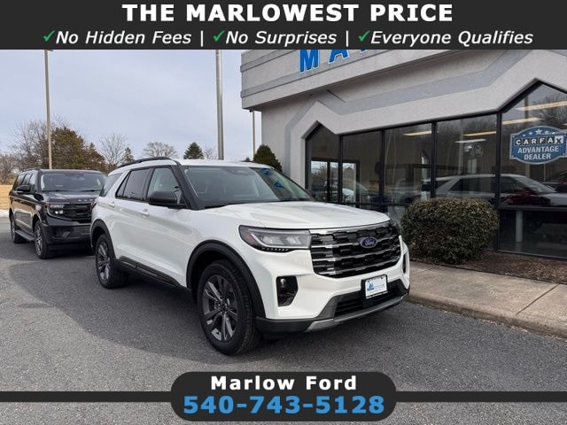 The Explorer Active does exactly what its name promises it keeps up with your life. Price includes the following incentives, not all customers may qualify. *Price does not include applicable tax, title, license, and processing fee of $589.00$3500 - Retail Customer Cash. Exp. 04/30/2026 2026 Ford Explorer — Marlow Ford in Luray Discover what a modern family SUV should deliver with the 2026 Ford Explorer at Marlow Ford in Luray. This Explorer brings real capability to everyday driving with confident power, available four-wheel drive, strong towing potential, and the kind of tech families rely on—like advanced driver-assist features and a spacious, flexible interior. If you’re comparing new SUVs in Front Royal, looking for Ford performance near Harrisonburg, or searching for a reliable 3-row option around Woodstock, the Explorer offers a proven balance of strength, comfort, and practicality. Shoppers choose Marlow Ford because we keep the process straightforward and personal. Our team helps you narrow down trims, compare features, and understand what truly matters for your daily driving. It’s an approach built on long-term relationships—whether you browse online first, want to value your trade, or prefer to stop in and walk the lot. You’ll always get clear information, direct answers, and a team focused on doing right by you. If the Explorer fits your needs, take the next step today. Visit us at 1021 US-211 West, Luray, or call 540-743-5128 to set up a test drive. You can also check our Explorer inventory online anytime and see current offers with upfront pricing. Building Long-Term Relationships By Exceeding Expectations.