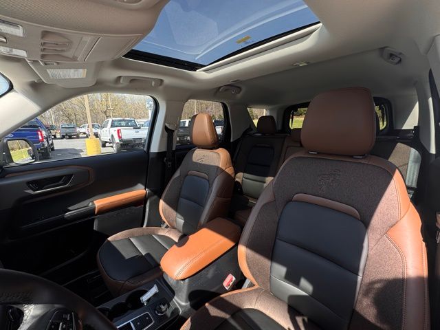 I got a 2025 Big Bend with the black diamond off road package. The steel modular front and rear in combination with bush guard gives this year model. A very aggressive off road look. With the ability to easily mount accessories and power them with the factory installed auxiliary switches. Hitch receiver seamlessly mounted into the rear steel bumper flanked by some very chunky recovery points. The upgraded aluminum rims wrapped with Continental all-terrains. It make this the most capable bronco sport yet. The interior of the 2025 has been updated with a new 13 inch touchscreen with Android Auto and apple car play. The lines of the dash flow elegantly from the new infotainment screen to the new all digital 12 inch gauge chaster. Toggling through the different modes on the gauge chaster is very intuitive, and all the displays are laid out very cleanly. Moving from gauge chaster the center storage cubby just below the infotainment screen there is a wireless charger and USB/ USB-c ports. The passenger side of that same cubby gets a handle and a matching one on the roof just in case the driver bucks a little too much. The passenger also gets a mesh storage area. That leads us to the fact this vehicle has tons of storage options all throughout. You have pockets on the sides of the front two seat big enough for the latest new phones. Very generous door storage on all four doors plus huge glove box and center console with 12 volt outlet. The back side of the center console has air vents and another 12 volt outlet plus a 110 outlet. Now getting to the cargo area it is massive for a crossover SUV. With off road package you get a cargo management system and a very nice rubber mat. Under that there is a full size tire plus scissor jack and funnel to use with the capless filler system. On the liftgate there isa pair of very bright led lights turned on with a switch in the cargo area. This feature packed vehicle has tons awesome gadgets and hidden a little homages I spend all day just talk that. At the end of the day it is car. So how does it drive. It is wonderful, the steering and pedal response is beautiful. Rides very smooth and little to no road noise going down the highway. The active cruise control and co-pilot 360 have been very handy. The car literally drives itself most of the time. There is not enough good things I could same about this car. I love it and you pick one too. You will see what I mean. - 5.0
